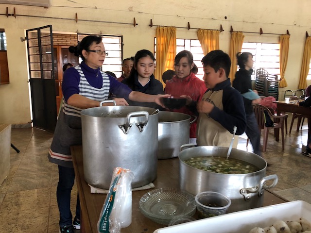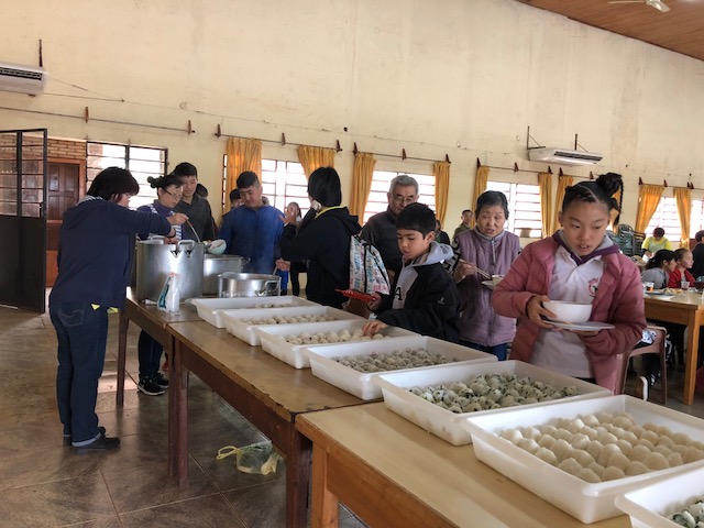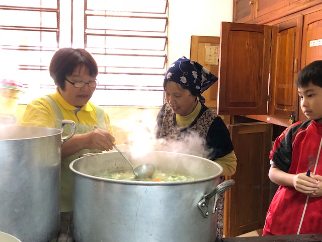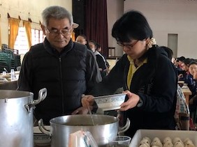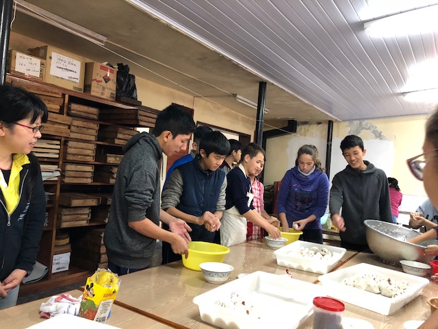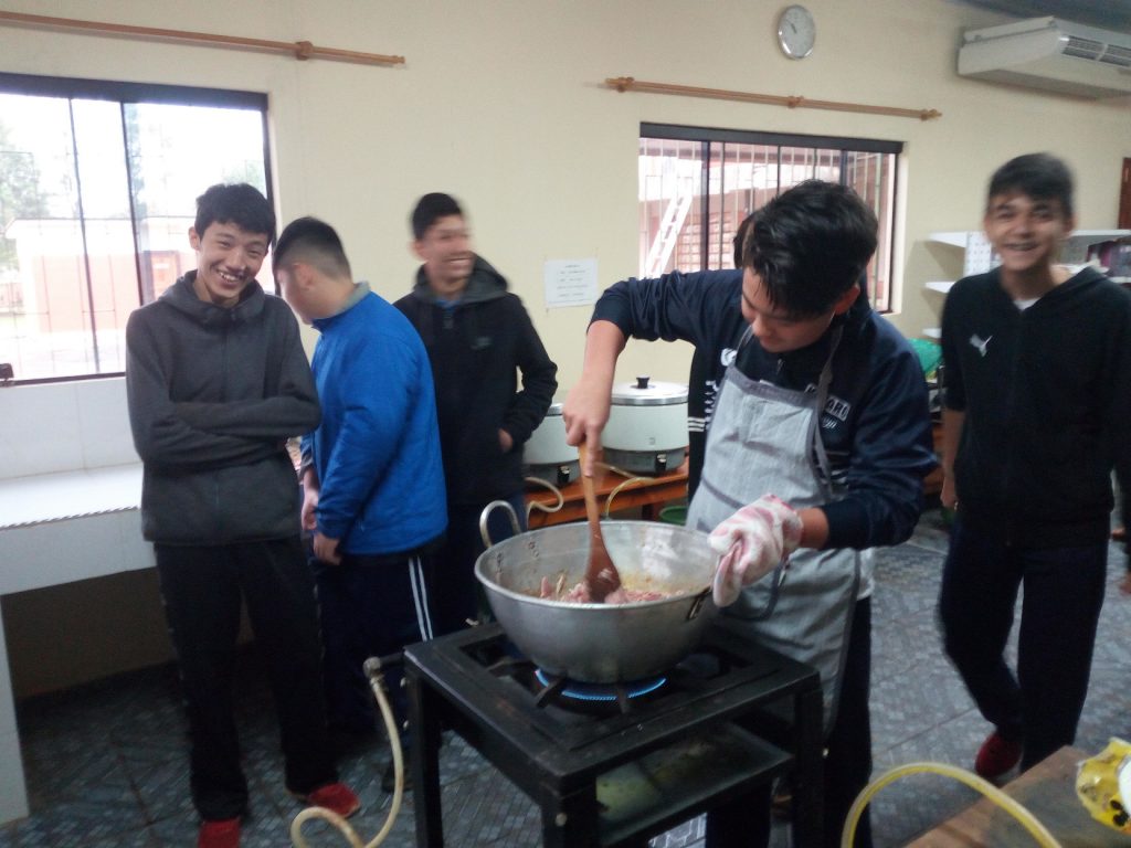 Dividimos en dos grupos. Uno para escuchar la plática y otro para preparar el almuerzo (onigiri y tonjiru) definiendo el horario para turnarse.