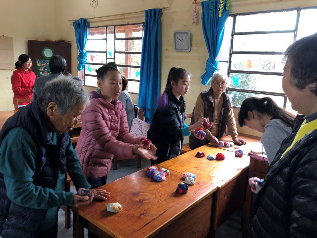 Se divirtieron realizando los juegos antiguos como el otedama, origami, juego del cordel, zancos, zancos de plástico y banbucóptero con el apoyo de los adultos mayores.