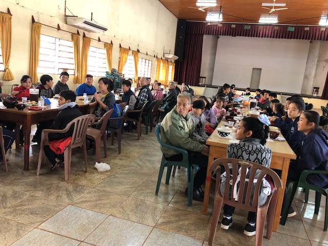 En el día dividimos en dos grupos entre los alumnos de la secundaria, y los alumnos de 4º, 5º y 6º grado, juntándose también los adultos mayores a cada grupo.