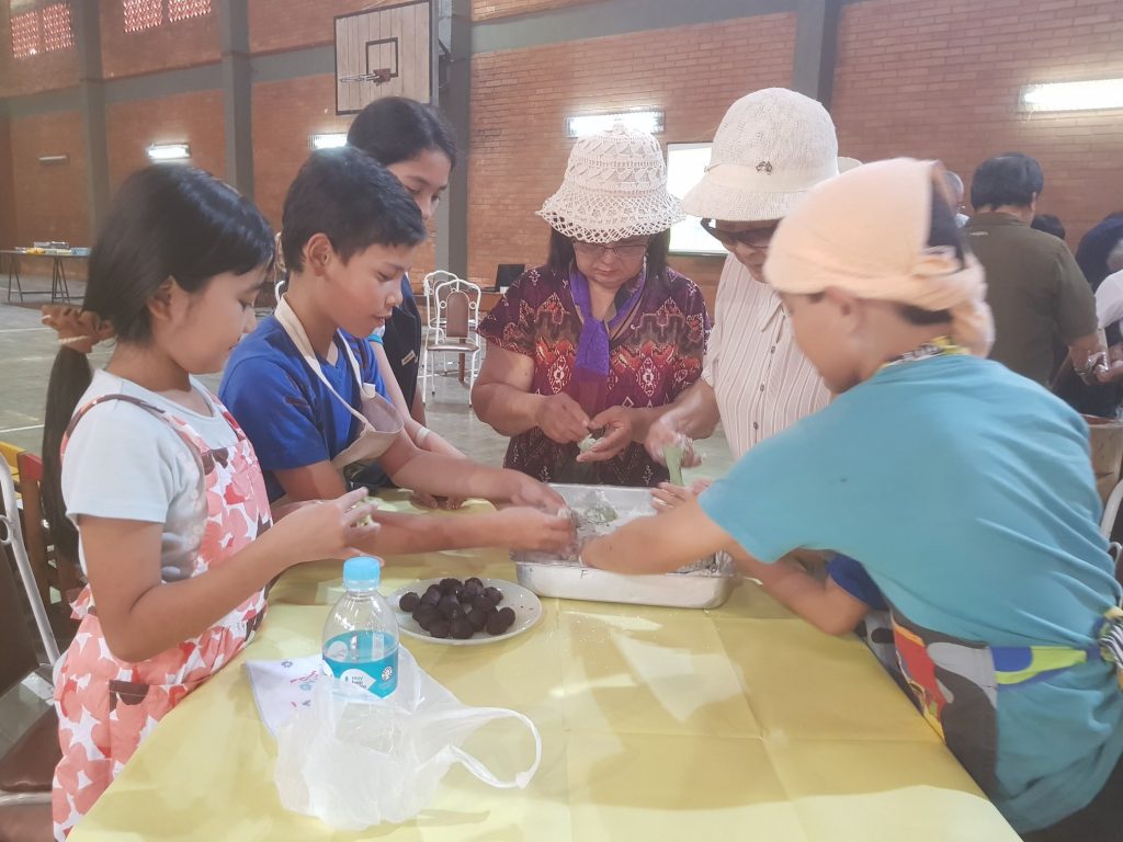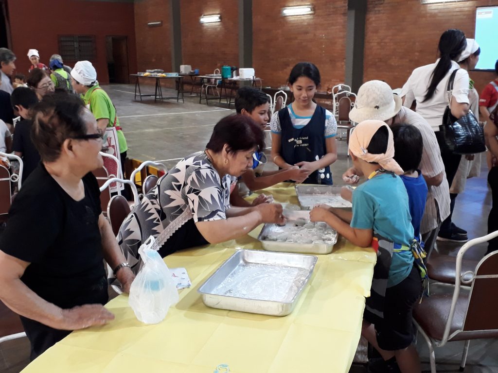 Una vez listo el  Mochi se llevó a la mesa en donde los alumnos fueron guiados para el rellenos de “Anko” (pasta de porotos dulces) por los Adultos Mayores.