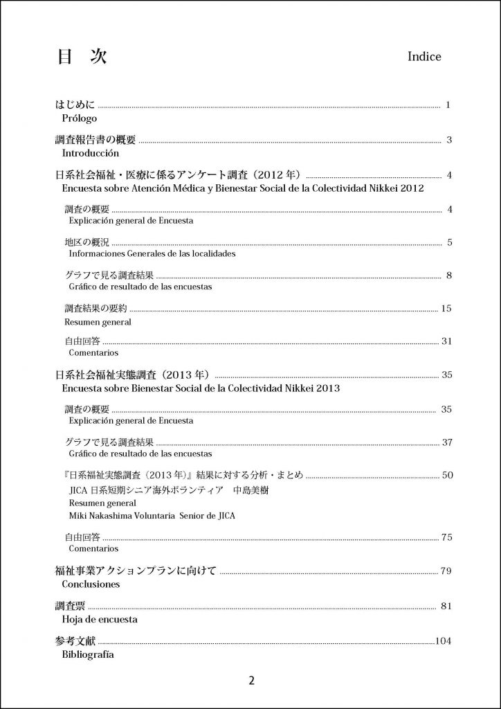 高齢者福祉推進委員会が発足して5 年目、日本人連合会の加盟団体等の20 歳以上の者を対象にした福祉調査が、2012年と2013 年に実施されました。福祉・医療に関する状況を把握し、基礎的なデータを収集・分析をすることで、今後の福祉活動の方向性を探ることが目的です。2013 年の調査の実施と両調査結果の集計・分析においては、JICA の短期シニアボランティアの支援を得ることができました。これらの調査は、日本人会や文化協会等、日本人会連合会の加盟団体を主な対象としており、非会員の日系人を把握できていないという限界はあるものの、幅広い世代からの健康や福祉に関する情報を数値化できたという成果がありました。