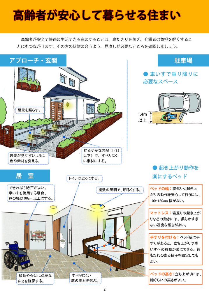 高齢者とその家族向けに、居住環境を整えて福祉用具を適切に使用することの基本的な知識を紹介。